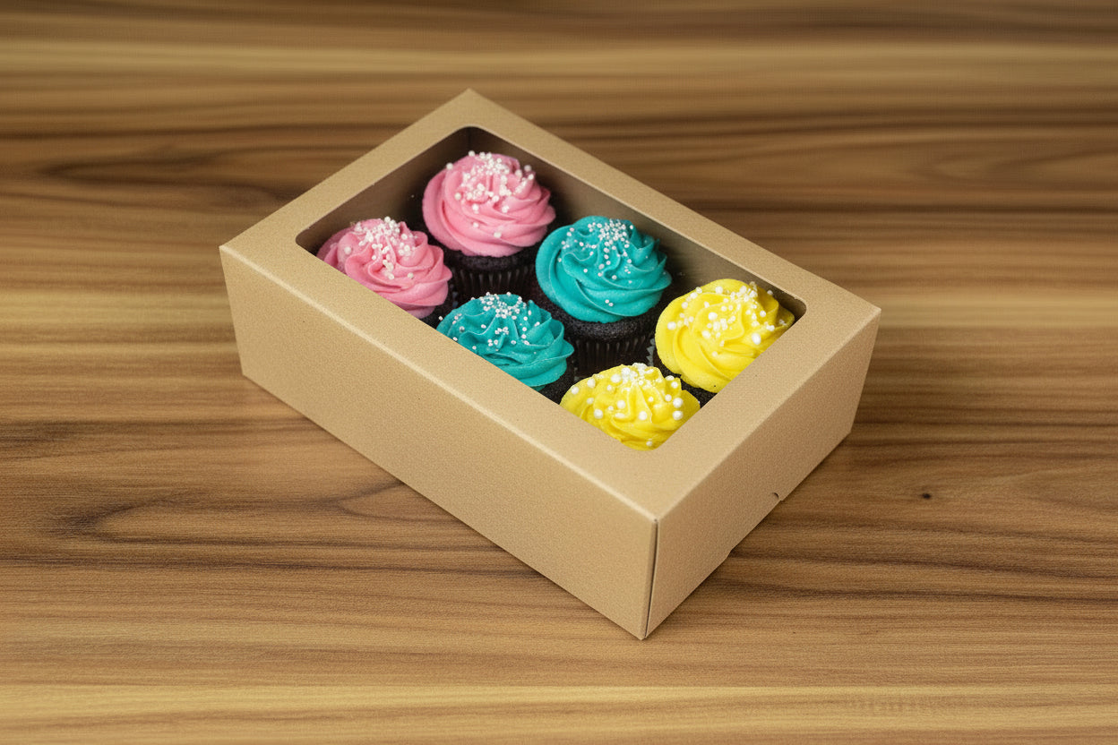 Elevate your baked goods presentation with our 6 Cup Cake Kraft Window boxes. Ideal for showcasing your treats, these eco-friendly boxes are perfect for arts & crafts projects.