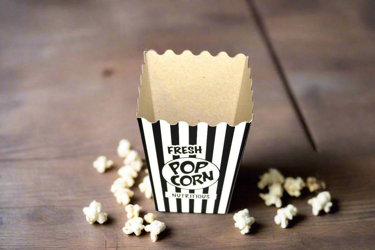 Upgrade your popcorn presentation with our charming Boxes - Popcorn Fresh Small. These boxes are perfect for movie nights or events.