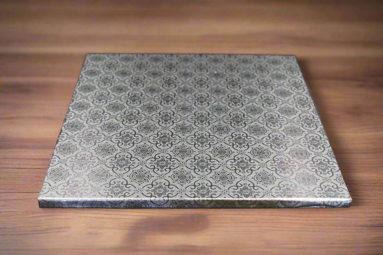 Elevate your cakes with the sturdy CAKE BOARD 10 SQUARE THICK. Perfect for displaying desserts, this board is durable and practical.