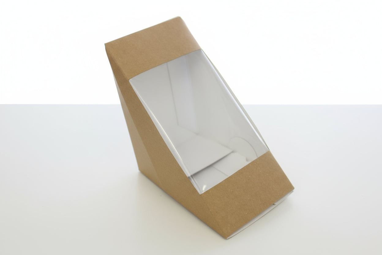 Introducing the eco-friendly Kraft Sandwich Wedge perfect for your arts & crafts projects. Made of durable kraft material, this box is ideal for packaging sandwiches or small treats.