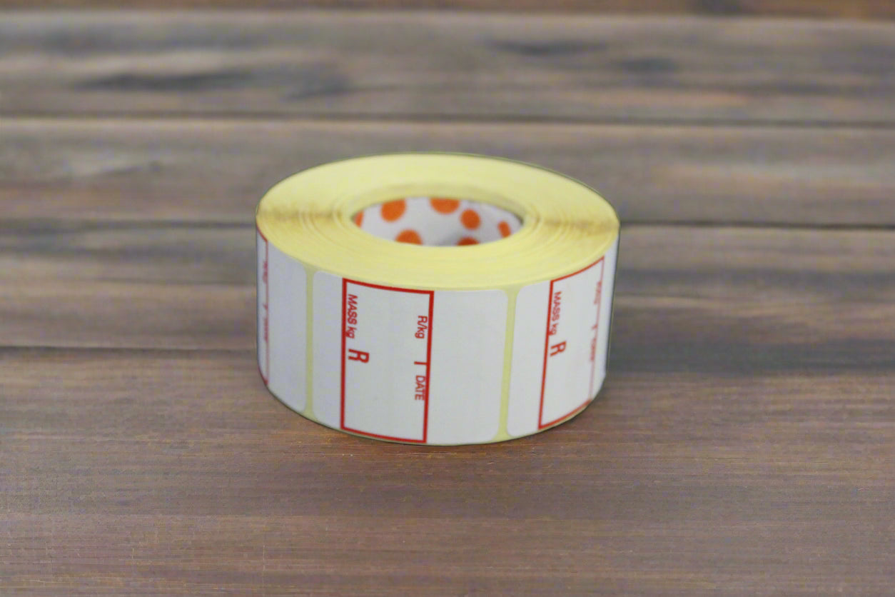 Enhance your weighing process with Unome Packaging's Scale Labels. This roll includes 700 printed labels, each measuring 40x46 mm, perfect for butcher shops, supermarkets, and more.